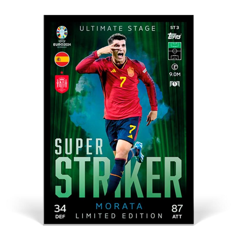 - Álvaro Morata (España): El «9» de La Roja. Una carta imprescindible para completar la página de España en tu álbum oficial de la UEFA Euro 2024.
