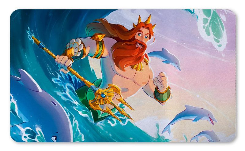 Sumérgete en la aventura épica del océano con este playmat inspirado en Rey Tritón de Disney Lorcana. Basado en la carta del poderoso rey de los mares, este diseño muestra a Tritón rodeado de delfines y olas, listo para defender su reino submarino. Inspirado en el mundo de La Sirenita, este playmat captura la fuerza y majestuosidad de uno de los personajes más icónicos de Disney.