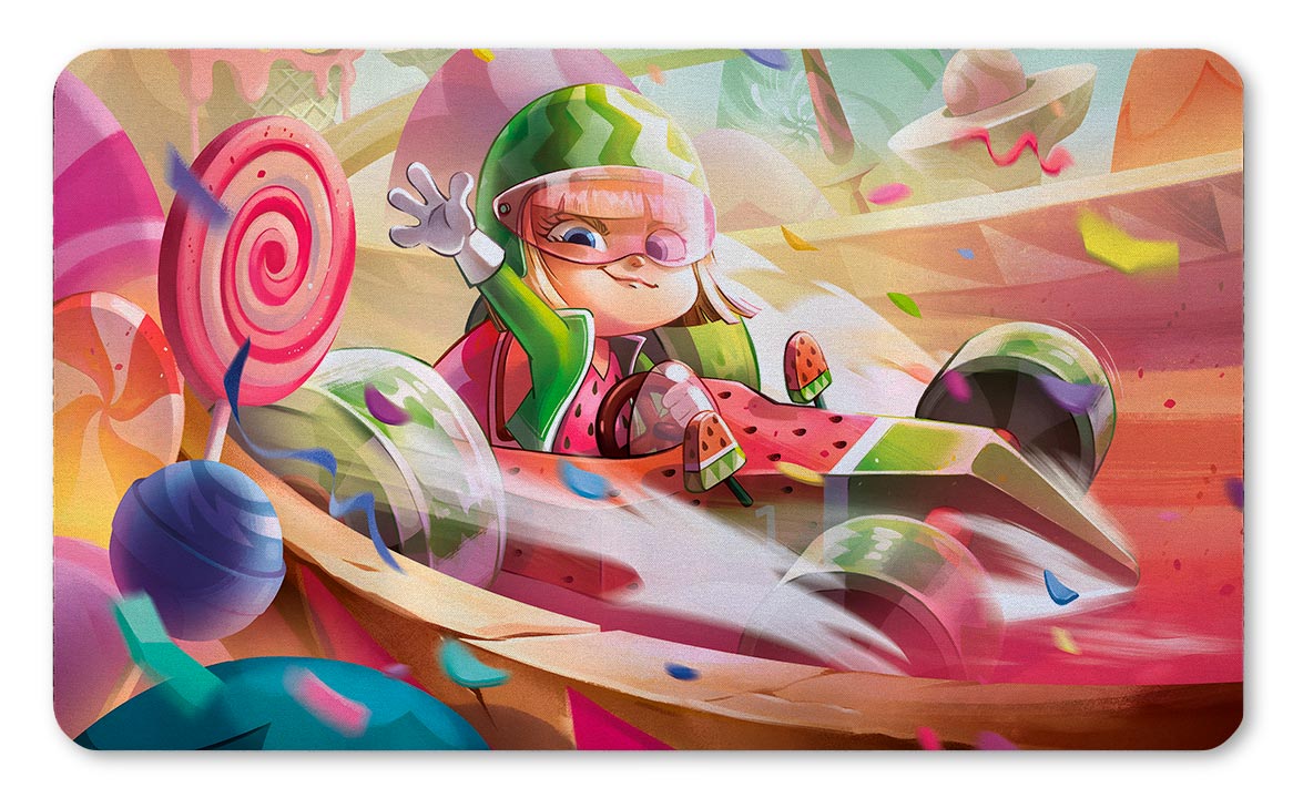Sumérgete en el mundo colorido y dulce de Vanellope von Schweetz, la intrépida corredora de Sugar Rush, en este playmat inspirado en Disney Lorcana. Con un diseño lleno de caramelos y colores vibrantes, este tapete es ideal para aquellos que buscan añadir diversión y estilo a cada partida. Vanellope, conocida por su personalidad audaz y su habilidad para destacar en las carreras, es el personaje perfecto para darle vida a este playmat.